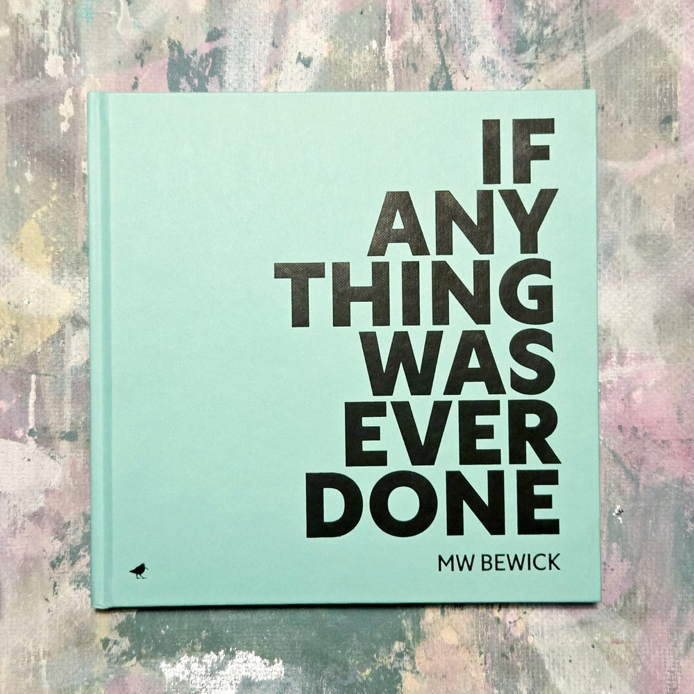 MW Bewick’s indefinable new work, If Any Thing Was Ever Done is in fact a hybrid text – a multi-faceted clash of poetry, prose poems, broken text, sketches of memoir, personal notes, journalism and photography. It is also a story about the creative partnership between MW Bewick and Ella Johnston, co-founders of Dunlin Press.